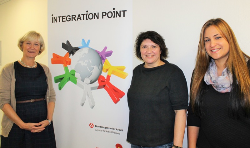 Foto (v.l.) Elke Pella (Teamleitung / Integrationpoint), Ellen Stock (SPD-Kreisvorsitzende), Selen Saner (Mitarbeiterin / Integrationpoint)