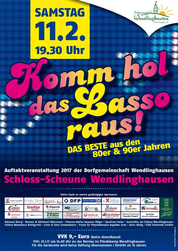 Der Kartenvorverkauf zum Preis von 9.-, findet nur am 21.01.2017 um 14:00 Uhr an der Remise im Pferdekamp in Wendlinghausen statt.