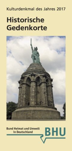 Der Bund Heimat und Umwelt (BHU) hat für 2017 „Historische Gedenkorte“ als Kulturdenkmal des Jahres gewählt. Als Bundesverband der Bürger- und Heimatvereine, der mit seinen Landesverbänden die Interessen von rund einer halben Million Bürgerinnen und Bürgern vertritt, möchte der BHU mit dieser Jahresaktion auf bemerkenswerte, aber oft gefährdete Kulturlandschaftselemente aufmerksam machen: Gedenkorte sind dafür ein gutes Beispiel, wie das jetzt erschienene Faltblatt des BHU erläutert. Gedenkorte können beispielsweise Gebäude, Ruinen, Denkmäler, Grabmale, Statuen, Kunstwerke, Naturdenkmäler, Informationstafeln oder Aussichtspunkte sein. Sie erinnern an historische Ereignisse oder Personen. Gefährdet sind vor allem die Erinnerungsorte mit lokaler Bedeutung, die zunehmend in Vergessenheit geraten. Dadurch geht im schlimmsten Fall auch ihre zugehörige Geschichte verloren. Je nachdem, woran erinnert wird, rufen die Gedenkorte unterschiedliche Emotionen hervor. Kriegsdenkmäler rufen ein beklemmendes Gefühl in uns hervor. Ebenso die Stolpersteine, die in vielen Städten in den Boden eingelassen sind und an das Schicksal der Menschen, die im Nationalsozialismus verfolgt, ermordet oder vertrieben wurden, erinnern.