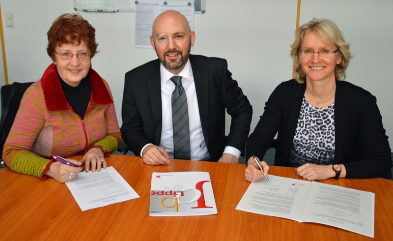 Unterzeichneten im Jobcenter Lippe eine Kooperationsvereinbarung, damit künftig Empfänger von Arbeitslosengeld II oder Sozialhilfe einfacher ihre Rechte als Mieter wahrnehmen können (v.l.): Veronika Rosenbohm (Vorsitzende des Mieterbundes OWL), Henning Matthes (Vorstand des Jobcenters Lippe) sowie Claudia Holzkämper (Fachgebietsleiterin Wirtschaftliche Hilfen im Fachbereich Jugend, Familie und Gesundheit beim Kreis Lippe).