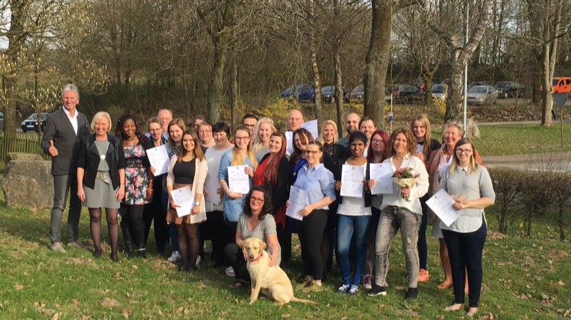 Strahlende Gesichter nach der Zeugnisübergabe im Fachseminar für Altenpflege in Blomberg. Foto: Johanneswerk