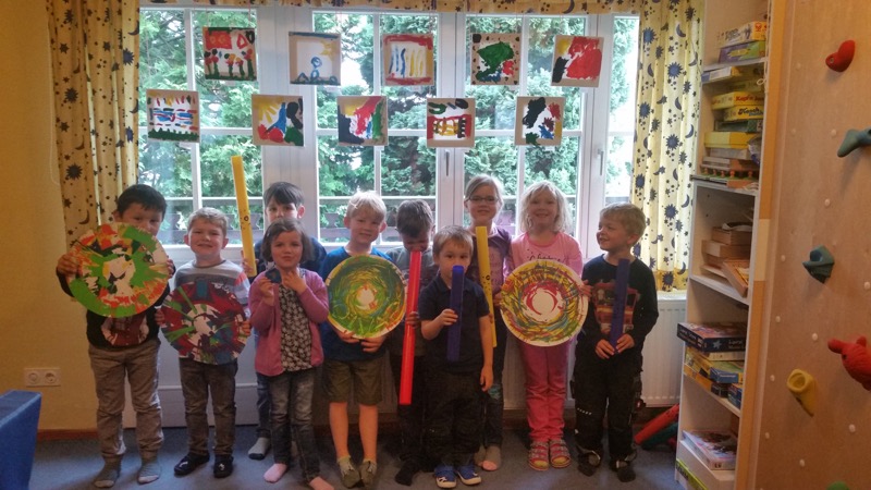 Nun lag es nicht fern, die so zahlreich entstanden kleinen Kunstwerke in einer abschließenden Ausstellung den Eltern und Großeltern an einem Nachmittag darzubieten. Die kleinen Künstler präsentierten stolz ihre bunten Schätze, die anschließend mit nach Hause genommen werden konnten und nun die heimischen Wände, Kühlschränke und Regale zieren.