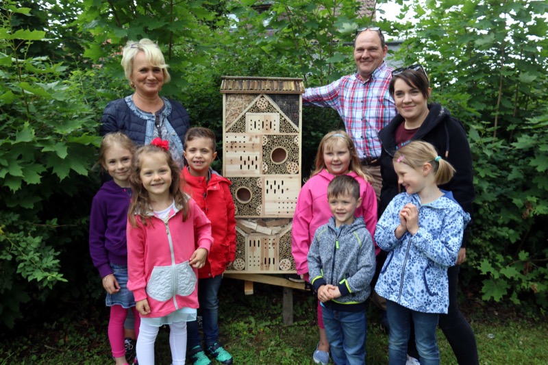 Auch für ganz kleine Tiere sorgen die Wald-AG-Kinder und bauten gemeinsam mit ihren Betreuerinnen und Hausmeister Jürgen Tammoschath ein Insektenhotel im Bösingfelder Park auf. Der soll nun des Öfteren Ziel der Wald-AG sein, denn natürlich möchten die Kinder beobachten, wie sich ersten “Gäste” wohnlich einrichten. Und da sich die Kinder gerne in und mit der Natur beschäftigen, gibt’s auch schon eine neue Idee: Sie möchten ein Blumen- oder Kräuterbeet im Park anlegen und pflegen. Über diese weitere “Belebung” des Park “Alter Friedhof” freut sich die Projektgruppe “Park mit Potenzial” natürlich sehr.